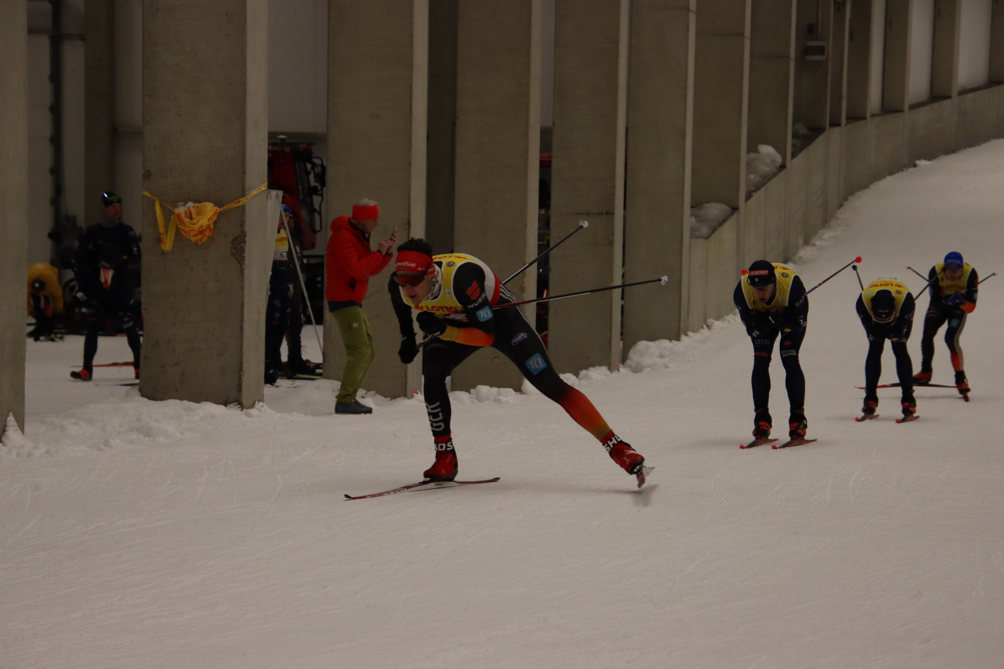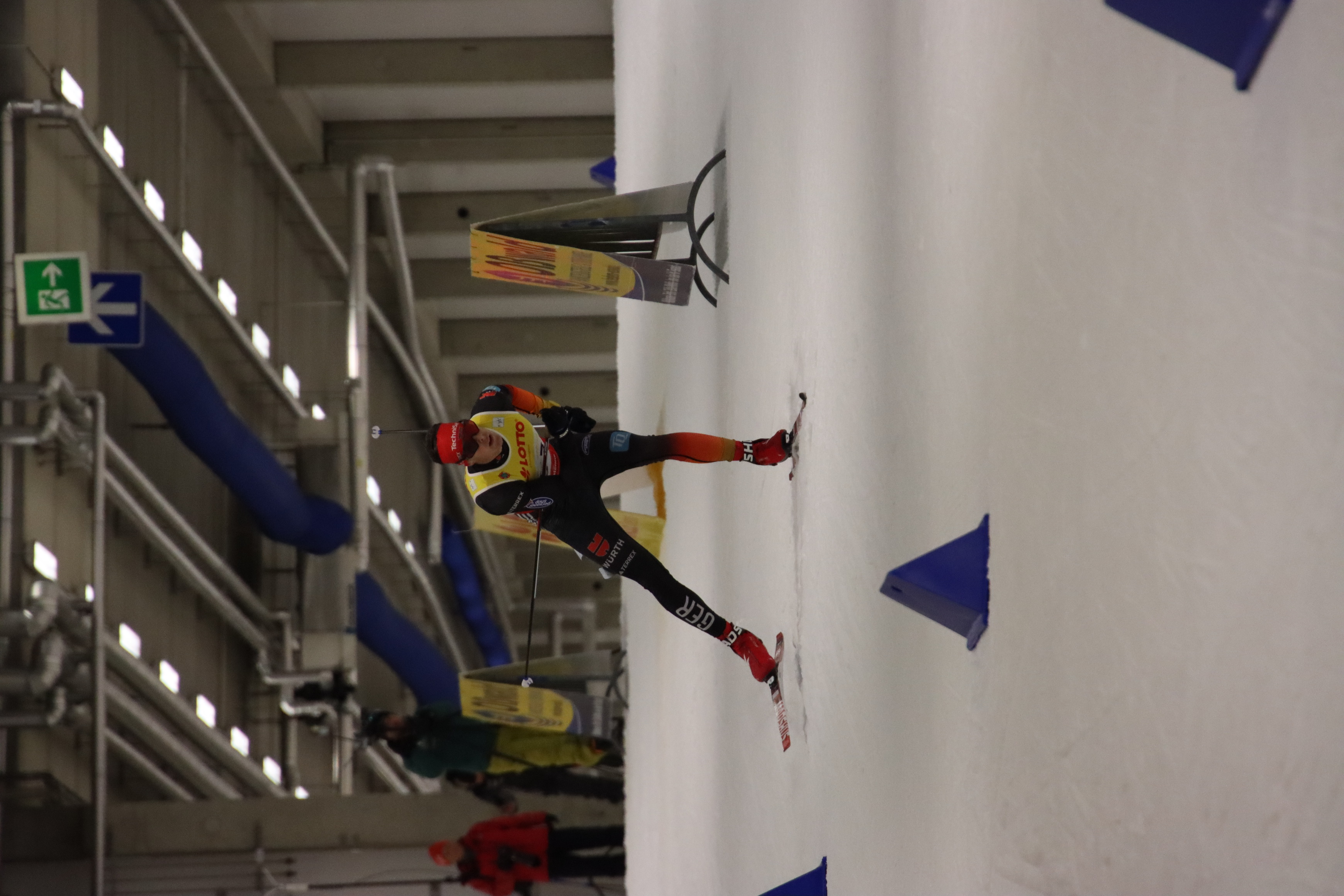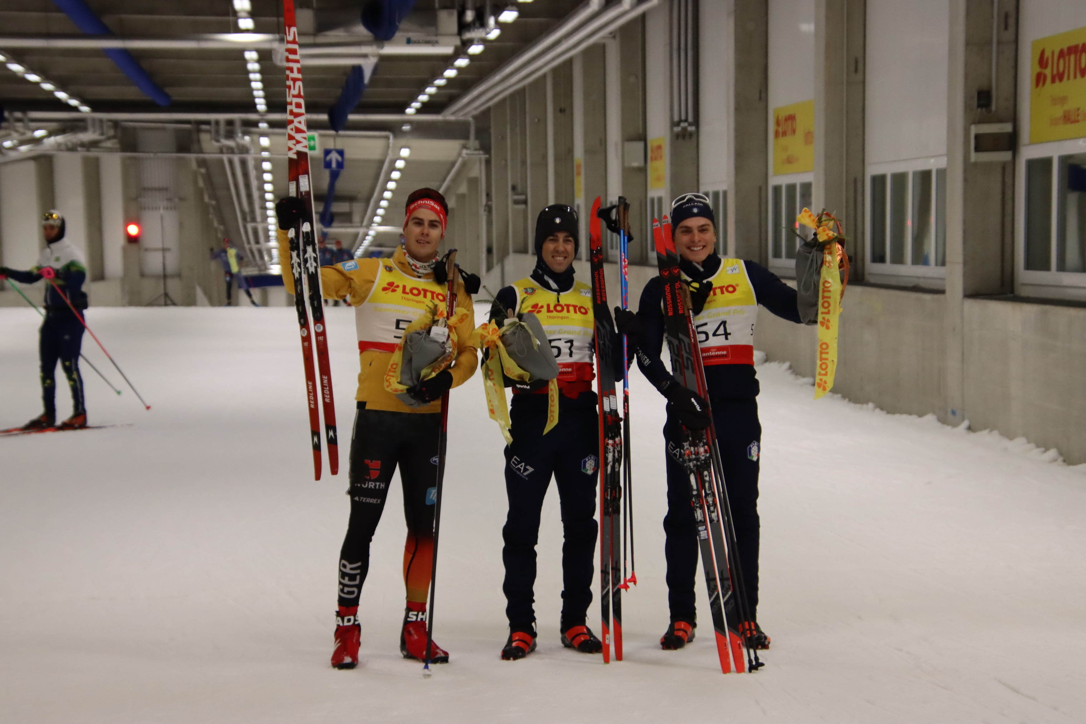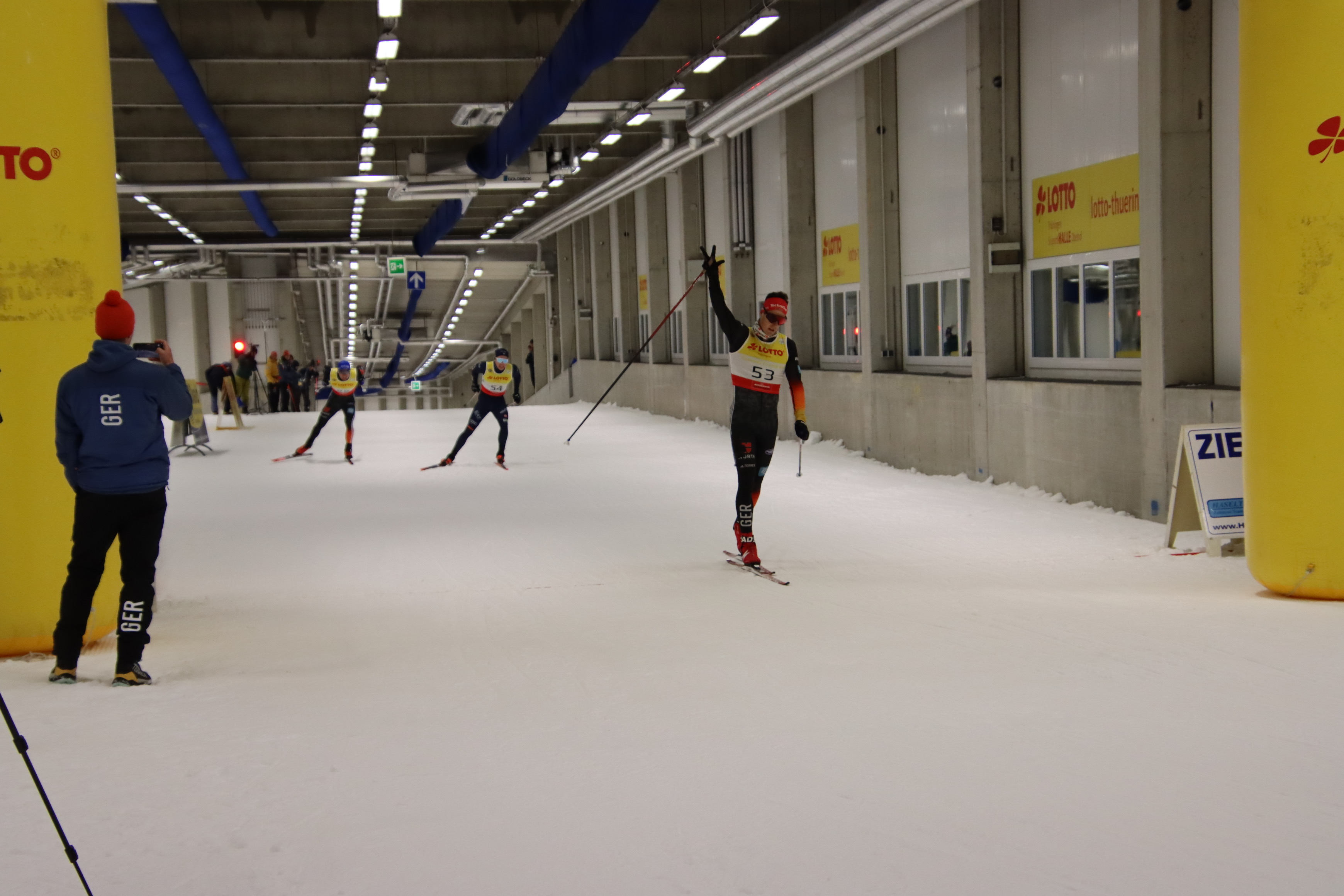 Alle Jahre findet Ende September in Oberhof die Zentrale Leistungskontrolle der Deutschen Skilangläufer statt. Dabei werden am Freitag in der Skihalle die Deutsche Meisterschaft im Sprint in freier Technik ausgetragen. In diesem Jahr waren als Gäste wieder die Sportler aus Italien (A- und B-Kader) sowie zusätzlich aus Spanien und Brasilien der A-Kader dabei. Beim DSV-Skihallensprint wird zunächst ein Prolog über 1,4 km gelaufen. Anschließend werden Finalläufe (Heats) über je 0,9 km der jeweils 4 benachbarten Läufer im Klassement durchgeführt. 1-4, 5-8, 9-12 … . In den folgenden Läufen können jeweils die Laufsieder einen Lauf aufsteigen und der Schlechteste steigt ab. Im dritten Finallauf dann werden die Endplatzierungen ausgelaufen.
